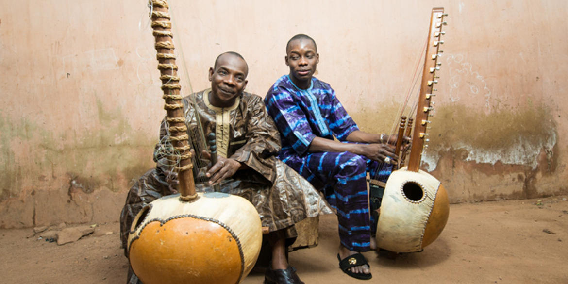 Toumani (conosciuto anche per via di importanti collaborazioni con Ali Farka Toure, con il quale si è aggiudicato un Grammy Award, Damon Albarn, Taj Mahal, Herbie Hancock e Björk), è uno dei più autorevoli maestri della kora, l’arpa-liuto a 21 corde tipica del Mali e di tutta l’Africa Occidentale che nella famiglia Diabaté si suona da generazioni e che inevitabilmente è finita tra le mani del giovane Sidiki. Padre e figlio dialogano fra loro traendo dallo stesso strumento delicate sfumature poetiche, ma anche infondendovi contagiosa energia comunicativa. Nel recente album che li vede insieme, intitolato semplicemente Toumani & Sidiki, omaggiano l’isola di Lampedusa e invitano con la loro musica a non dimenticare le infinite tragedie dei migranti.